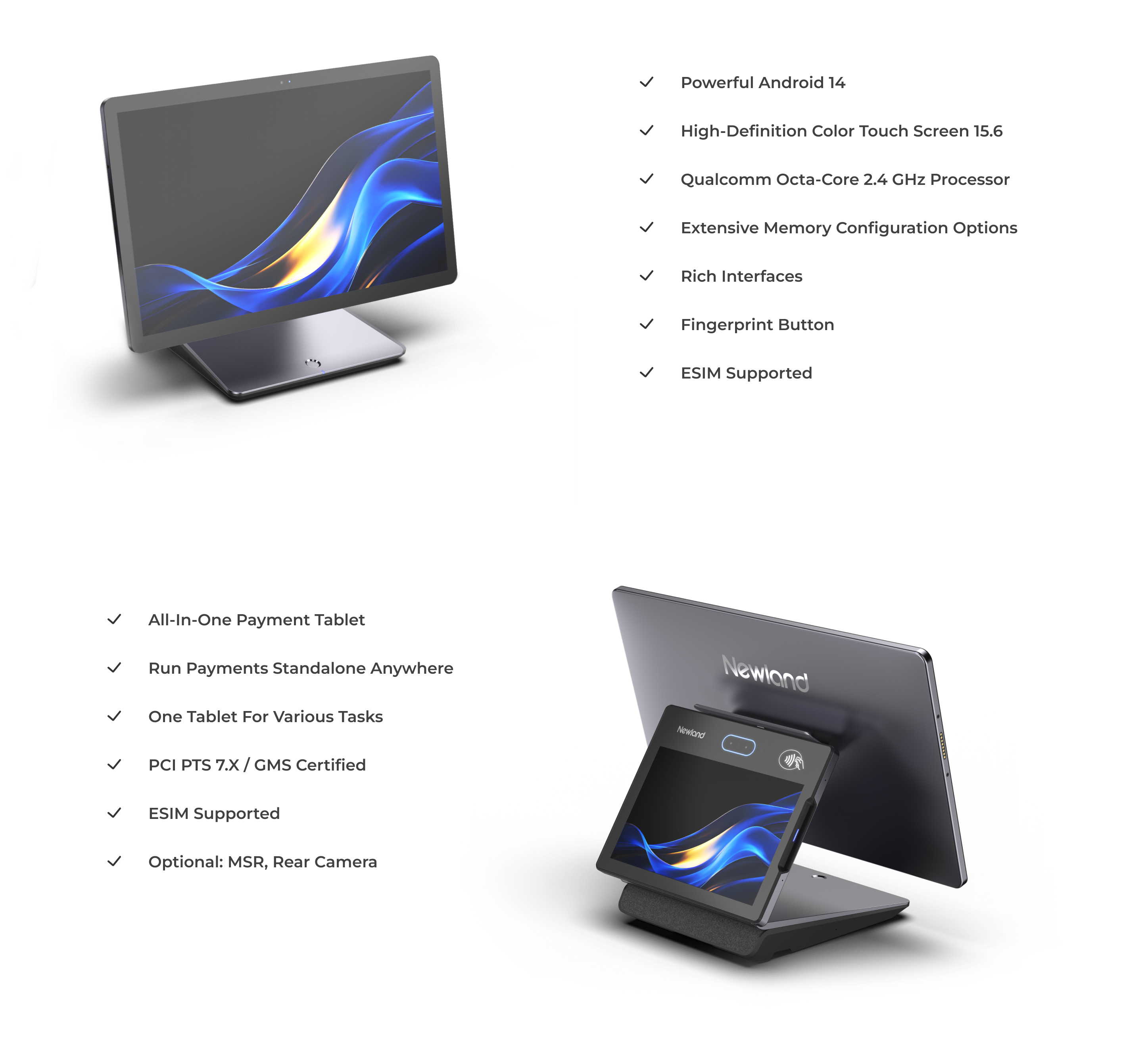 Go beyond a typical dual-screen ECR, featuring a front-mounted modular payment hub that unifies all payment methods in one secure, flexible device.