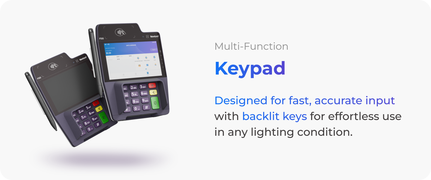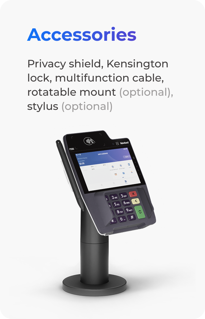 Driven by Android 11, P300 delivers unmatched performance with a stunning 5-inch HD multi-touch display. Whether it's accelerating fast checkout processes or powering interactive customer experiences, P300 is engineered to excel in every retail environment.