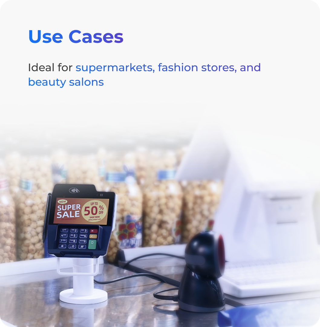 Effortlessly integrates into your payment ecosystem with versatile ports, wireless options, and external display support—built for fast deployment and frictionless operations.